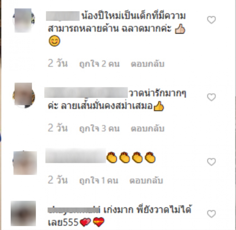 งานนี้ก็ทำเอาแฟน ๆ เข้ามากดไลก์กันเพียบ พร้อมคอมเมนต์แซวคุณปู่ด้วยว่า ชื่นชมหลานหนักมากจริง ๆ รู้เลยว่าหลงหลานสาวขนาดไหน พร้อมชมด้วยว่า น้องปีใหม่ เป็นเด็กที่มีความสามารถหลายด้าน อีกทั้งยังร่าเริง สดใสมากอีกด้วย