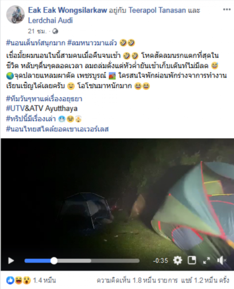 เรียกได้ว่าเป็นเรื่องราวที่มีคนพูดถึงและต่างเข้ามาแสดงความคิดเห็นกันเป็นจำนวนมาก เพราะต้องบอกเลยว่าตอนนี้ได้เข้าสู่ฤดุหนาวอย่างเป็นทางการแล้ว เชื่อว่าหลายๆที่คงเริ่มหนาวกันแล้ว และหลายๆคนก็วางแพลนไปเที่ยวกันบ้างแล้ว แน่นอนค่ะว่าหน้าหนาวนี้จะนอนให้ฟินเราต้องไปนอนกางเต้นท์บนดอยใช่ไหมค่ะ โดยผู้ใช้เฟสบุ๊คที่ใช้ชื่อว่า Eak Eak Wongsilarkaw ได้โพสต์ข้อความระบุว่า