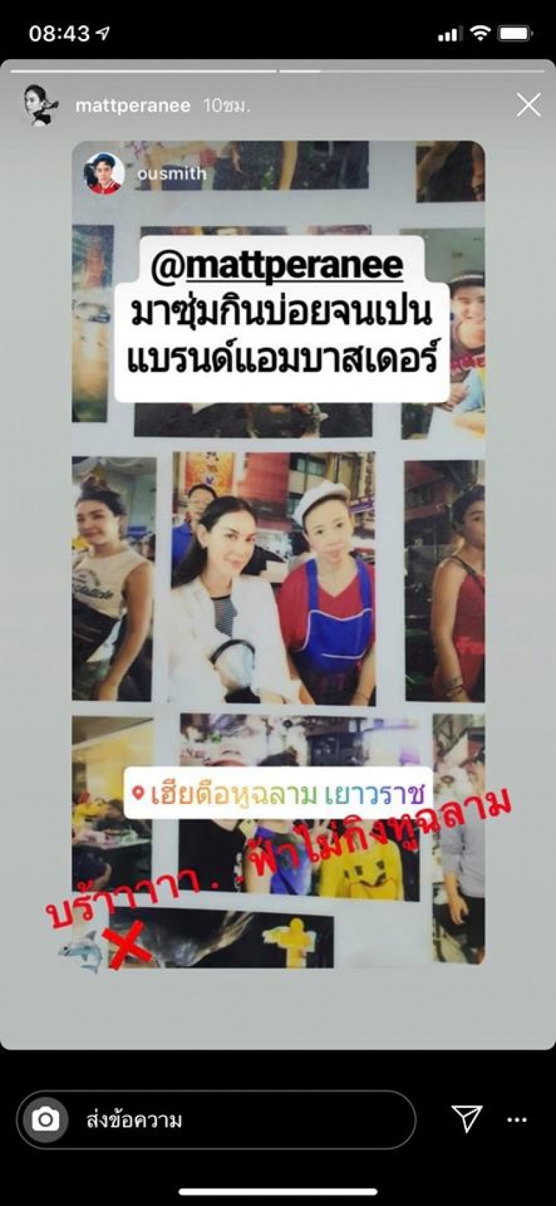 ล่าสุดแมท ภีรนีย์ได้ออกมาโพสต์แล้วจ้าหลังสงกรานต์มาเจอแอฟ ทักษอร ในงานแต่ง ต้องบอกเลยว่าเป็นโพสต์ที่แซ่บมากเลยทีเดียว โดยได้ระบุข้อความว่า มาซุ่มกินบ่อยจนเป็นแบรนด์แอมบาสเดอร์