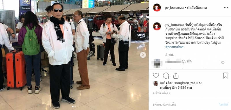 ล่าสุดทางด้าน คุณปู่ไพวงษ์ ก็ได้ออกมาโพสต์ข้อความผ่านอินสตาแกรมเอาไว้ว่า วันนี้ปู่จะไปดูงานที่เมืองจีนกับสถาบัน ตรงกับวันเกิดพอดี แต่เมื่อคืนวานป้าหญิงนมมะลิกับลุงหน่องเลี้ยง surprise วันเกิดให้ปู่ กับจากเมืองจีนแล้วปีใหม่พาโคโม่มาเป่าเค้กbirthday ให้ปู่นะ peamaitae