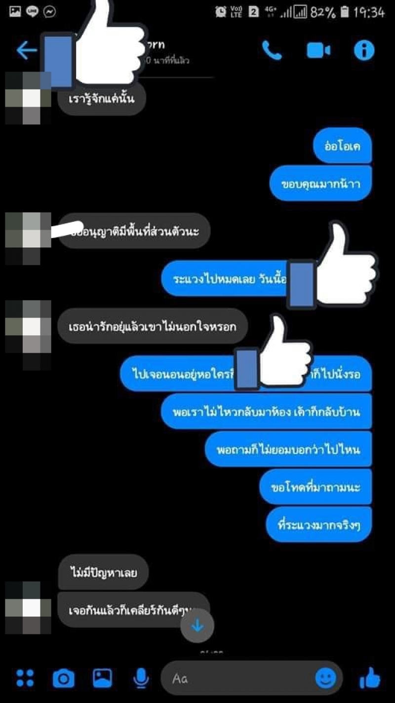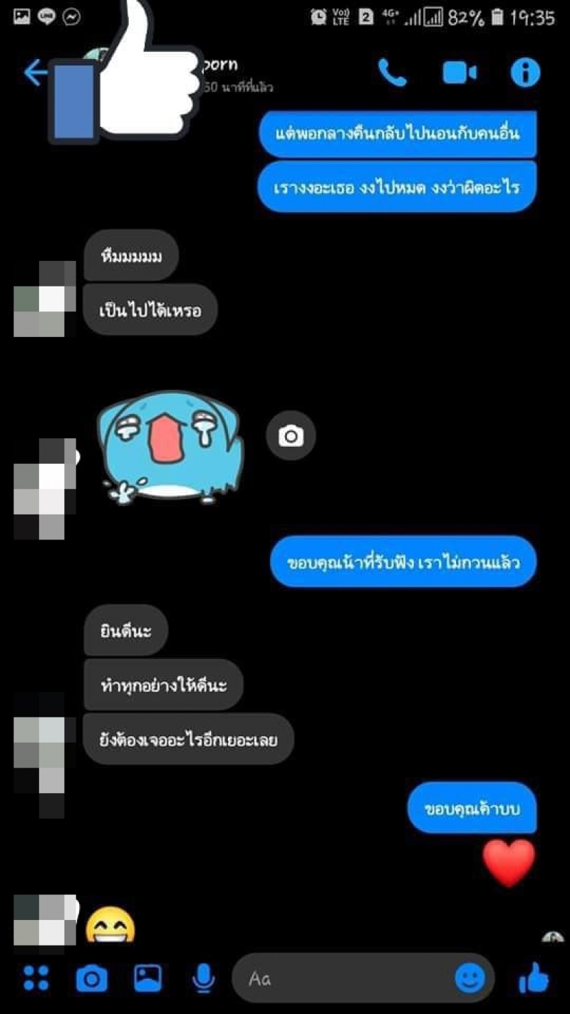 เราตามมาดูนะ แต่ไม่เชื่อ เพราะไม่เจอรถ เลยให้เพื่อนพากลับไปที่บ้านแฟนเพื่อดูรถ ได้คุยกับพี่สาวแฟนว่าเค้าเอารถอีกคันมา เราเลยกลับมาที่หอเพื่อนที่เดิม ก็เจอรถคันที่เอามาจริงๆ บวกกับเราสงสัยผู้หญิงอยู่คนนึง ที่เค้ากดรักโพสแฟนเรา เราเลยทักไปถามอย่างที่เห็น