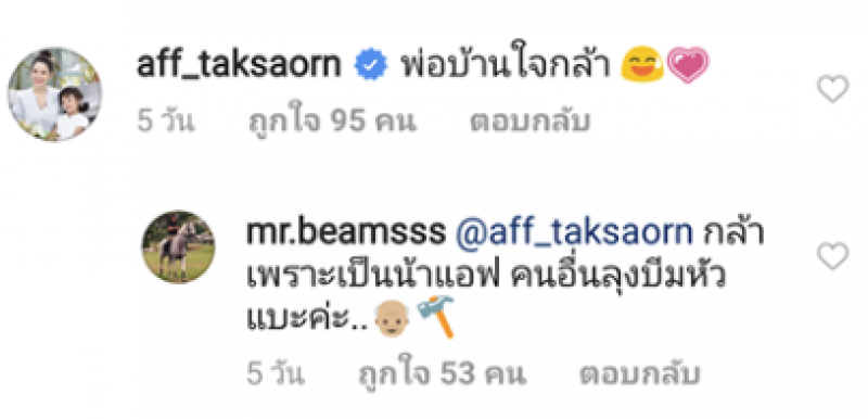 ซึ่งในงานมงคล ของ คุณ บีม คุณก้อย เจ้าสาวแสนสวย ซึ่ง แอฟและสงกรานต์ ก็ได้มาร่วม ในงานเดียวกันนี้ ด้วย แต่ไร้ ภาพคู่ของทั้ง 2 ฝ่าย ได้แต่ถ่ายภาพแสดงความยินดีกับเจ้าบ่าว แต่งานนี้ แอฟมาสวยมาก ดุจดังเจ้าหญิงแสนงาม ทำเอาแฟนคลับมาคอมเม้นท์ชื่นชมอย่างมากมาย ส่วน สงกรานต์ได้โพสต์แสดงความยินดีกับเจ้าบ่าว แต่กลับมีคนมาคอมเม้นท์แซวว่าไปงานเดียวกัน กับ แอฟ อดีตภรรยา และแซว ว่า วันนี้ แต่งหล่อเพื่อ มาเจอ คุณแอฟ รึป่าว สงกรานต์ ก็ตอบด้วย สติกเกอร์ ปิดตา เขิลๆๆ