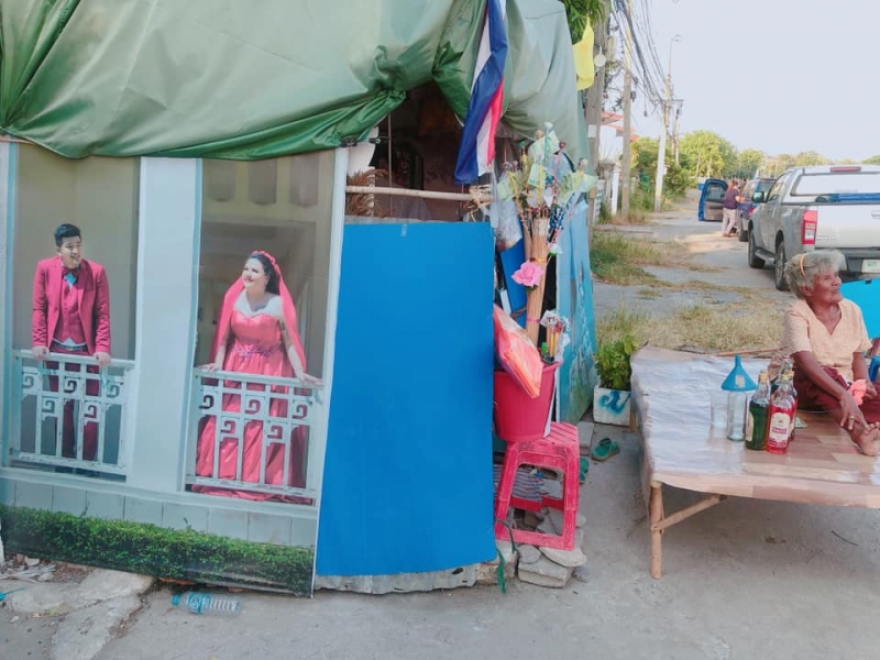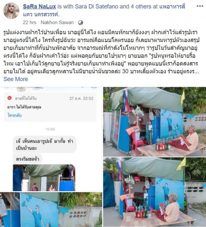 โดยเรื่องราวดังกล่าวได้เผยผ่าน ทางผู้ใช้เฟซบุ๊ค SaRa NaLux เผยว่า รูปแต่งงานฝากไว้บ้านเพื่อน มาอยู่นี่ได้ไง ตอนมีคนทักมาก็ยังงงๆ ฝากเค้าไว้แล้วรูปเรามาอยู่ตรงนี้ได้ไง ใครทิ้งรูปฉันว่ะ อารมณ์คือแบบโคตรนอย ก็เลยมาตามหารูปตัวเองสรุปยายเก็บมาทำที่กั้นบ้านพักอาศัย จากอารมณ์ที่กำลังโมโหมากๆ ว่ารูปในวันสำคัญมาอยู่ตรงนี้ได้ไง ก็ฉันฝากเค้าไว้อ่ะ