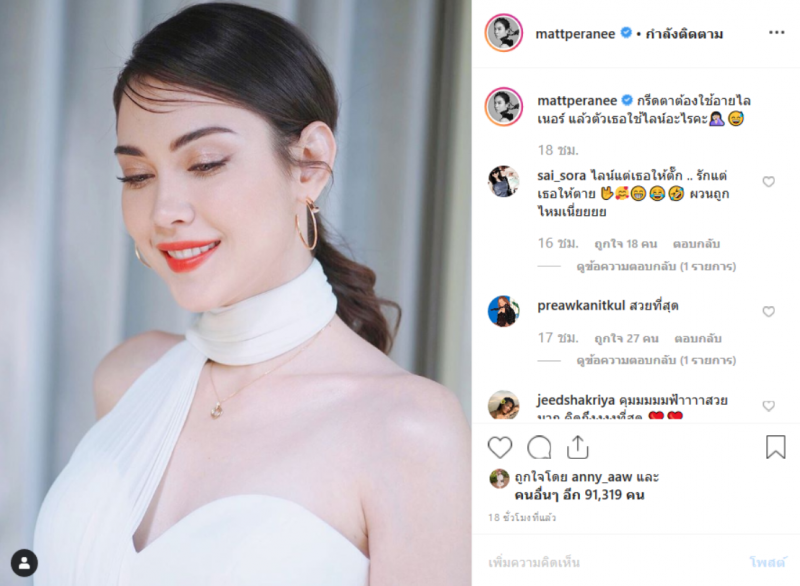 ล่าสุด ไปส่องความเคลื่อนไหวของสาว แมท ภีรนีย์ หลังคุณปู่ไพวงษ์ คอมเม้นท์เดือดโยโพสต์ล่าสุดของเธอนั้นได้โพสต์ภาพตัวเองยิ้มสดใส พร้อมแคปชั่นสุดเด็ด โดยได้ระบุข้อความว่า ตาต้องใช้อายไลเนอร์ แล้วตัวเธอใช้ไลน์อะไรคะ