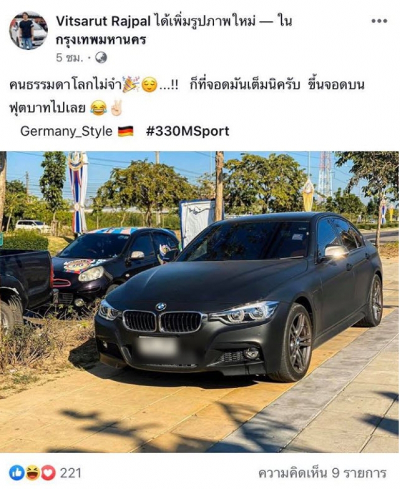 วิจารณ์สนั่น พี่ชายนางเอกดังจอดรถหรูบนฟุตบาท ลั่น ผมเคลียร์ได้