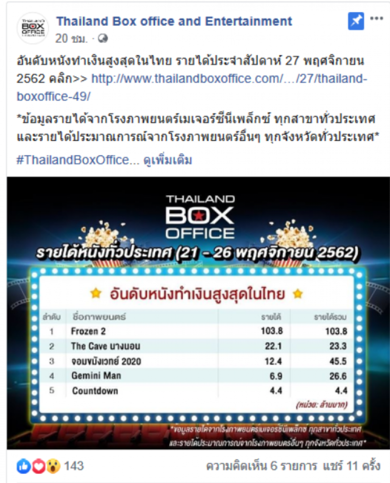 ภาพจาก เพจเฟซบุ๊ก Thailand Box office and Entertainment