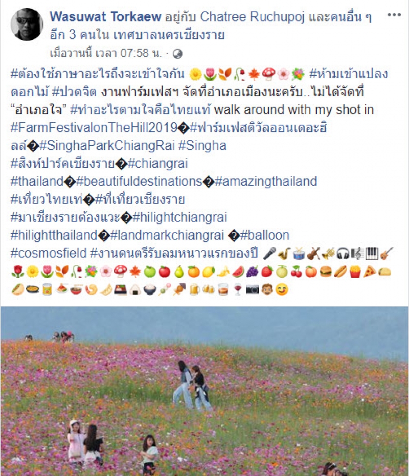 ต้องใช้ภาษาอะไรถึงจะเข้าใจกัน ห้ามเข้าแปลงดอกไม้ ปวดจิต งานฟาร์มเฟสฯ จัดที่อำเภอเมืองนะครับไม่ได้จัดที่ อำเภอใจ ทำอะไรตามใจคือไทยแท้ walk around with my shot in FarmFestivalonTheHill2019 ฟาร์มเฟสติวัลออนเดอะฮิลล์ SinghaParkChiangRai Singha สิงห์ปาร์คเชียงราย
