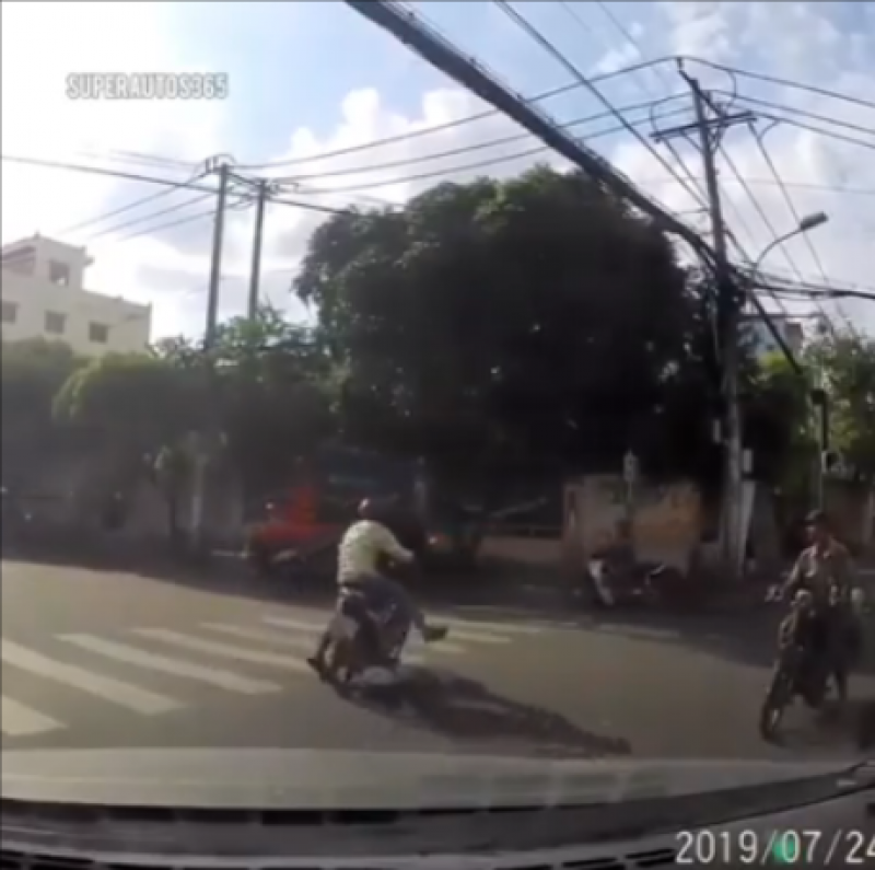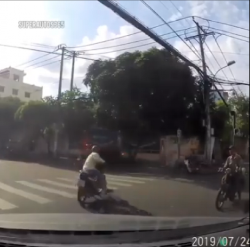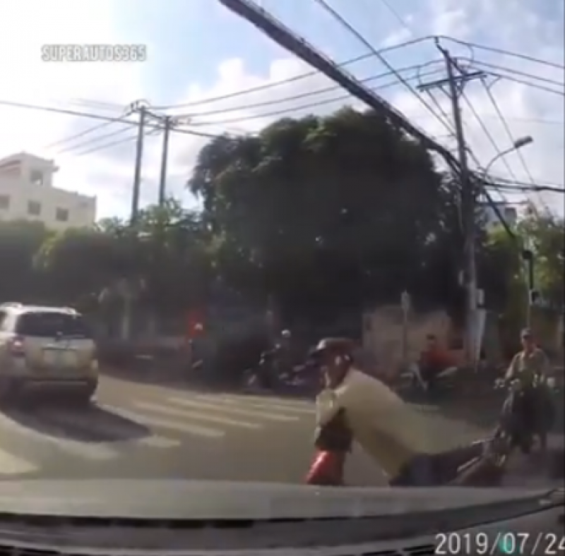 โดยคลิปดังกล่าวเป็นภาพเหตุการณ์จากกล้องหน้ารถยนต์คันที่เบรคให้กับรถมอเตอร์ไซค์ที่คุยโทรศัพท์มือถือ ก่อนที่คนขับรถ จยย จะเกิดอาการตกใจรีบบิดคันเร่งขณะที่มืออีกข้างยังคงยกโทรศัพท์คุยกับปลายสายอยู่ จากนั้นรถได้หมุนเคว้งอยู่กลางสี่แยกก่อนจะล้มลงไปกองแบบไม่เป็นท่า