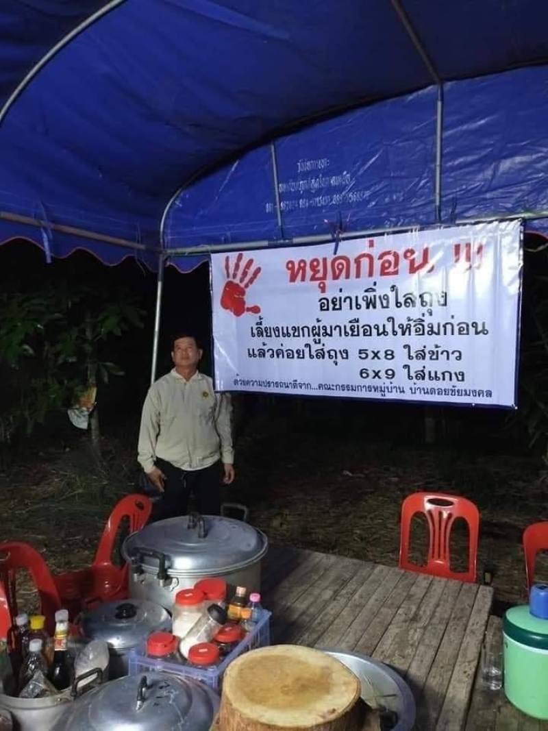หยุดก่อนอย่าเพิ่งใส่ถุง เลี้ยงแขกผู้มาเยือนให้อิ่มก่อนแล้วค่อยใส่ถุง นอกจากนี้ยังมีการกำหนดถุงด้วยว่าไซส์ไหน โดยระบุว่า 5 x 8 ใส่ข้าว 6 x 9 ใส่แกง