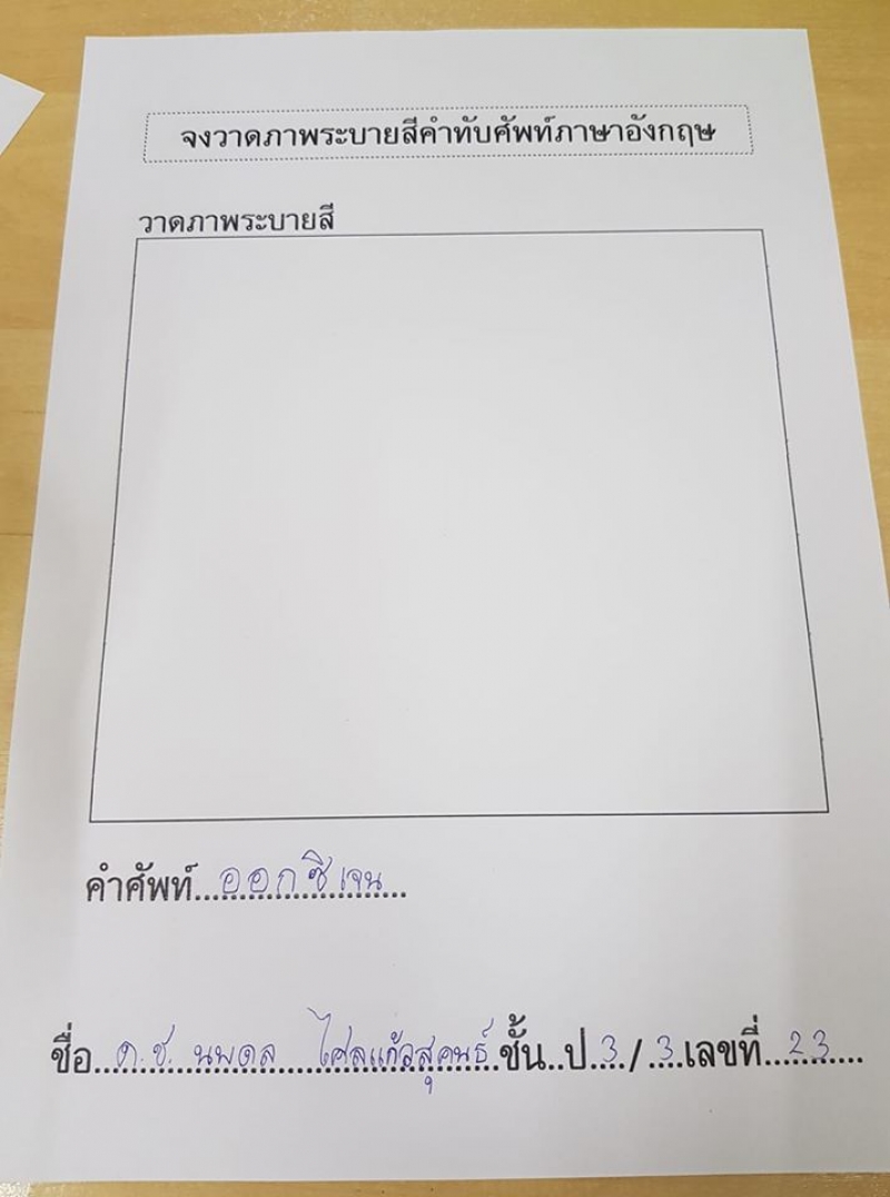 เรียกได้ว่าเป็นเรื่องราวที่สร้างเสียงฮาและเสียงหัวเราะกันเป็นจำนวนมาก เมื่อคุณพ่อผู้ใช้เฟซบุ๊ก Nattarwut Saigallsukon โพสต์ภาพการบ้านของลูกชายที่เตรียมนำไปส่งให้กับอาจารย์ด้วยโจทย์ จงวาดภาพระบายสีคำทับศัพท์ภาษาอังกฤษ ก่อนที่เด็กชายซึ่งเรียนอยู่ชั้นประถมศึกษาปีที่ 3 จะโชว์ IQ ที่สูงเกินกว่าเด็กทั่วไป ด้วยการเขียนคำศัพท์ ออกซิเจน ลงไปในคำตอบ และเตรียมส่งกระดาษเปล่าให้กับอาจารย์ผู้สอนพิจารณาให้คะแนน