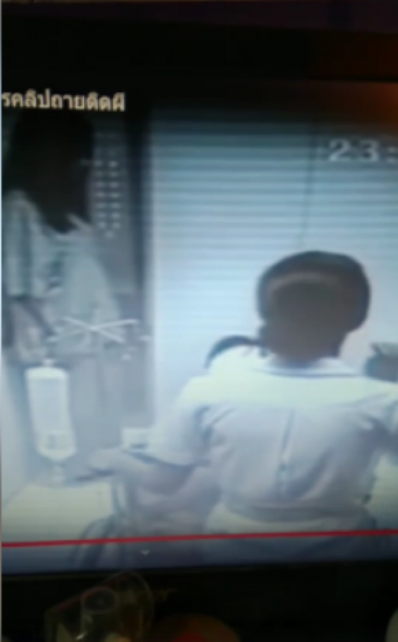 คลิปดังกล่าวเป็นคลิปในลิฟต์โรงพยาบาลแห่งหนึ่ง ที่มีพยาบาลกำลังอยู่กับคนไข้ และมีหญิงสาวคนนึงอยู่ในลิฟต์ด้วย แต่แล้ว หญิงสาวคนดังกล่าว ได้เดินแล้วหันมายิ้มให้คุณพยาบาล ก่อนที่ตัวเองนั้นจะทะลุประตูลิฟท์ออกไปหน้าตาเฉย เล่นเอาพยาบาลวิ่งกันเลยทีเดียวงานนี้