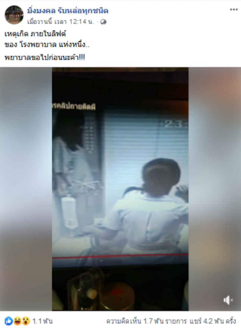 เหตุเกิด ภายในลิฟต์ ของ โรงพยาบาล แห่งหนึ่ง พยาบาลขอไปก่อนนะค้า
