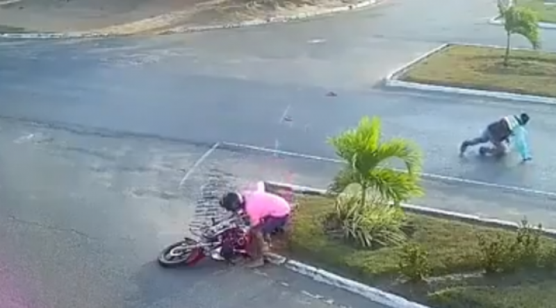 จากคลิปของผู้ใช้เฟซบุ๊ก Karla Vivyan จะเห็นว่าในช่วงแรกผู้ชาย 2 คนซ้อนจักรยานยนต์มาด้วยกัน แต่จู่ๆ ชายเสื้อชมพูก็กระโดดลงกลางถนน จนรถเสียหลัก หลังจากนั้นมีการทะเลาะกันเล็กน้อย