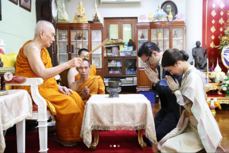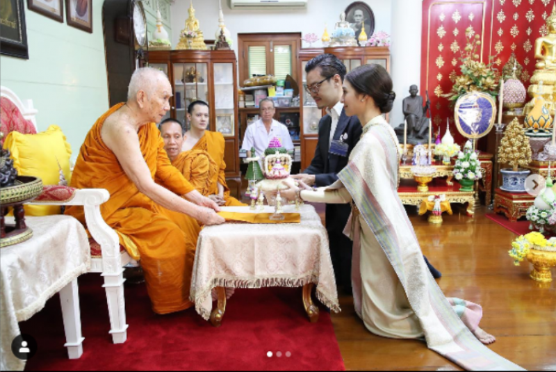 โดยผู้จัดการส่วนตัวของสาวมิว ได้เผยภาพบรรยากาศการเข้าเฝ้าฯ ที่เกิดขึ้น ผ่านอินสตาแกรม pujira พร้อมข้อความระบุว่า เช้านี้เข้าเฝ้าถวายสักการะ สมเด็จพระอริยวงศาคตญาน สมเด็จพระสังฆราช สกลมหาสังฆปริณายก พร้อมกราบขอพร และรับประทานน้ำพระพุทธมนต์ เพื่อเป็นสิริมงคลแก่คู่สมรส ท่ามกลางคอมเม้นท์จากเหล่าแฟนคลับ ที่ต่างเข้ามาร่วมแสดงความยินดีกันเป็นจำนวนมาก