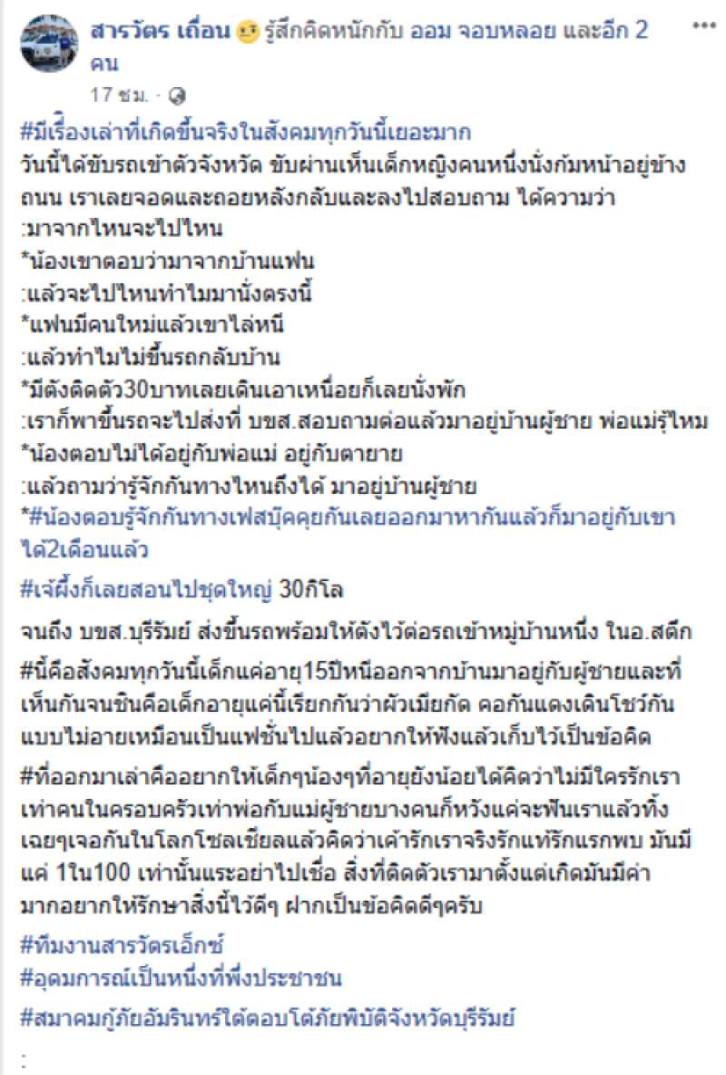 เป็นอีกหนึ่งเรื่องราวที่โซเชียลเข้ามาแสดงความเห็นกันเป็นจำนวนมาก หลังมีผู้ใช้เฟสบุ๊คชื่อ สารวัตร เถื่อน ได้ออกมาโพสต์โดยได้ระบุข้อความว่า
