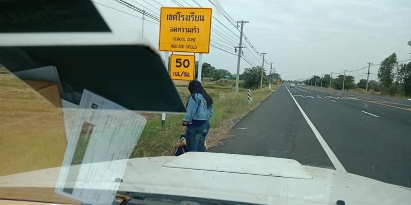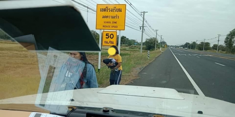 วันนี้ได้ขับรถเข้าตัวจังหวัด ขับผ่านเห็นเด็กหญิงคนหนึ่งนั่งก้มหน้าอยู่ข้างถนน เราเลยจอดและถอยหลังกลับและลงไปสอบถาม ได้ความว่า