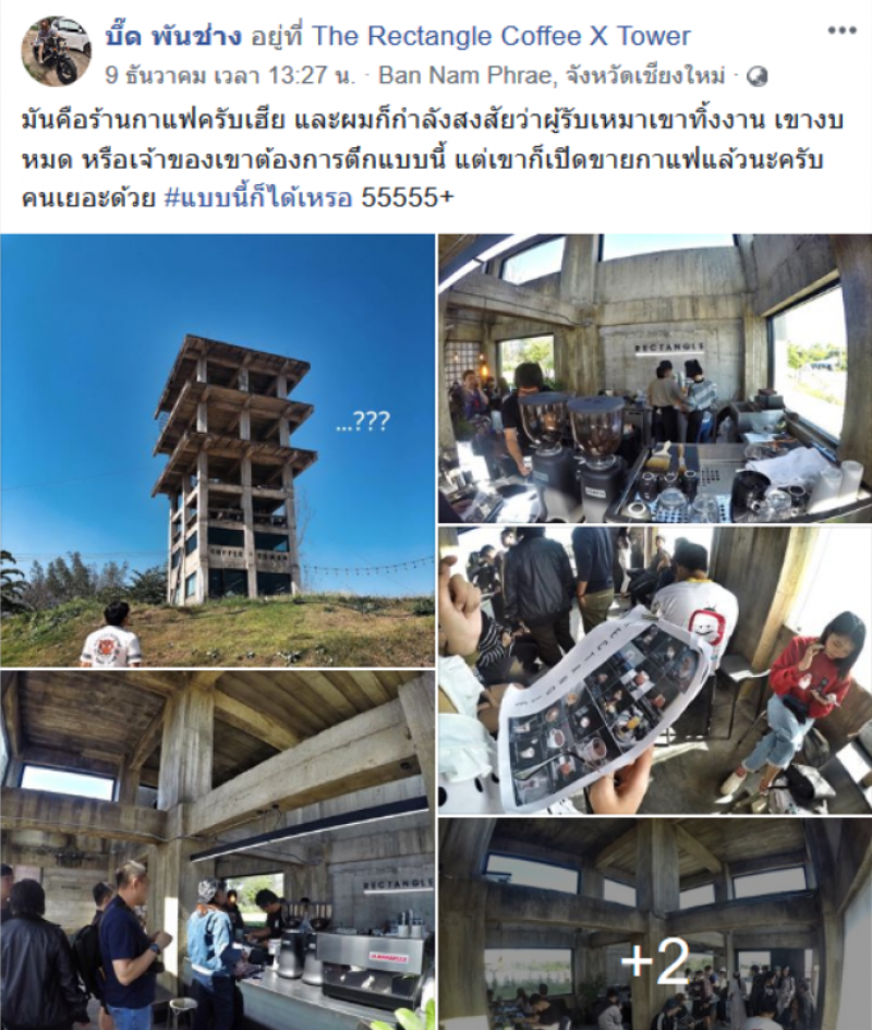 วันที่ 12 ธันวาคม 2562 ทีมข่าวสยามวาไรตี้รายงานว่า โลกออนไลน์มีการส่งต่อภาพเหตุการณ์ของผู้ใช้เฟซบุ๊กชื่อ บึ๊ด พันช่าง ซึ่งได้ดพสต์ภาพของตึกเก่าๆ โดยระบุข้อความว่า มันคือร้านกาแฟครับเฮีย และผมก็กำลังสงสัยว่าผู้รับเหมาเขาทิ้งงาน เขางบหมด หรือเจ้าของเขาต้องการตึกแบบนี้ แต่เขาก็เปิดขายกาแฟแล้วนะครับ คนเยอะด้วย แบบนี้ก็ได้เหรอ 55555