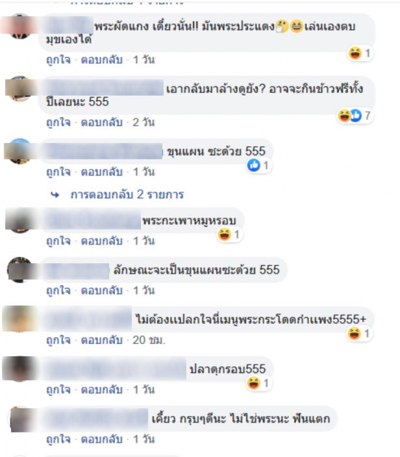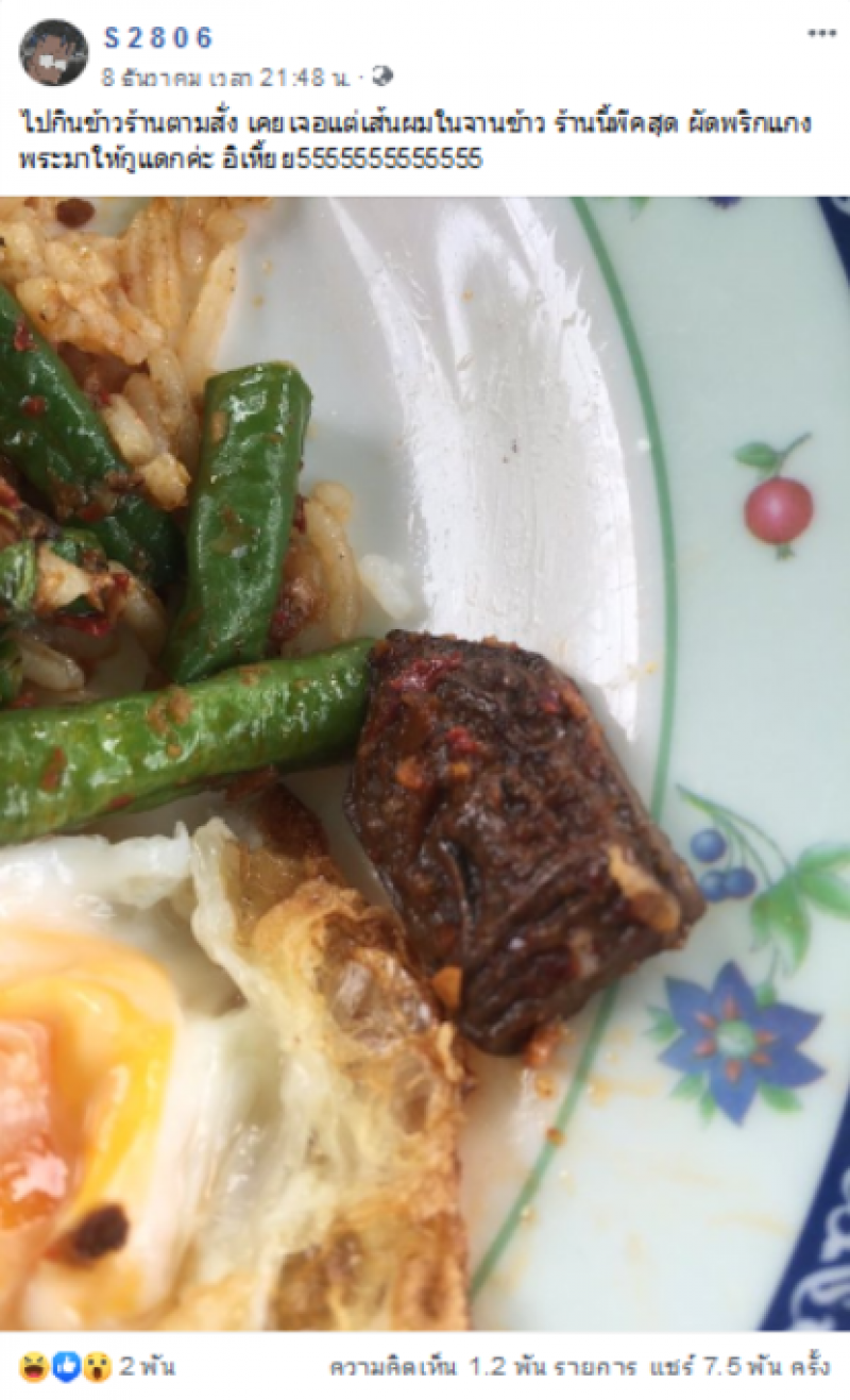 เรียกได้ว่าเป็นอีกหนึ่งเรื่องราวที่โซเชียลเข้ามาแสดงความคิดเห็นกันเป้นจำนวนมาก หลังมีผู้ใช้เฟสบุ๊คชื่อ S 2 8 0 6 ได้ออกมาโพสตภาพอาหารจานหนึ่ง พร้อมทั้งได้ระบุข้อความว่า ไปกินข้าวร้านตามสั่ง เคยเจอแต่เส้นผมในจานข้าว ร้านนี้พีคสุด ผัดพริกแกงพระมาให้กิน งานนี้ใครที่เจอเหตุการณ์แบบนี้ถึงกลับรับตั้งนะโม 3 จบเลยจ้า หลังเรื่องราวถูกเผยแพร่ออกไปมีโซเชียลเข้ามาแสดงความเห็นกันเป็นจำนวนมาก