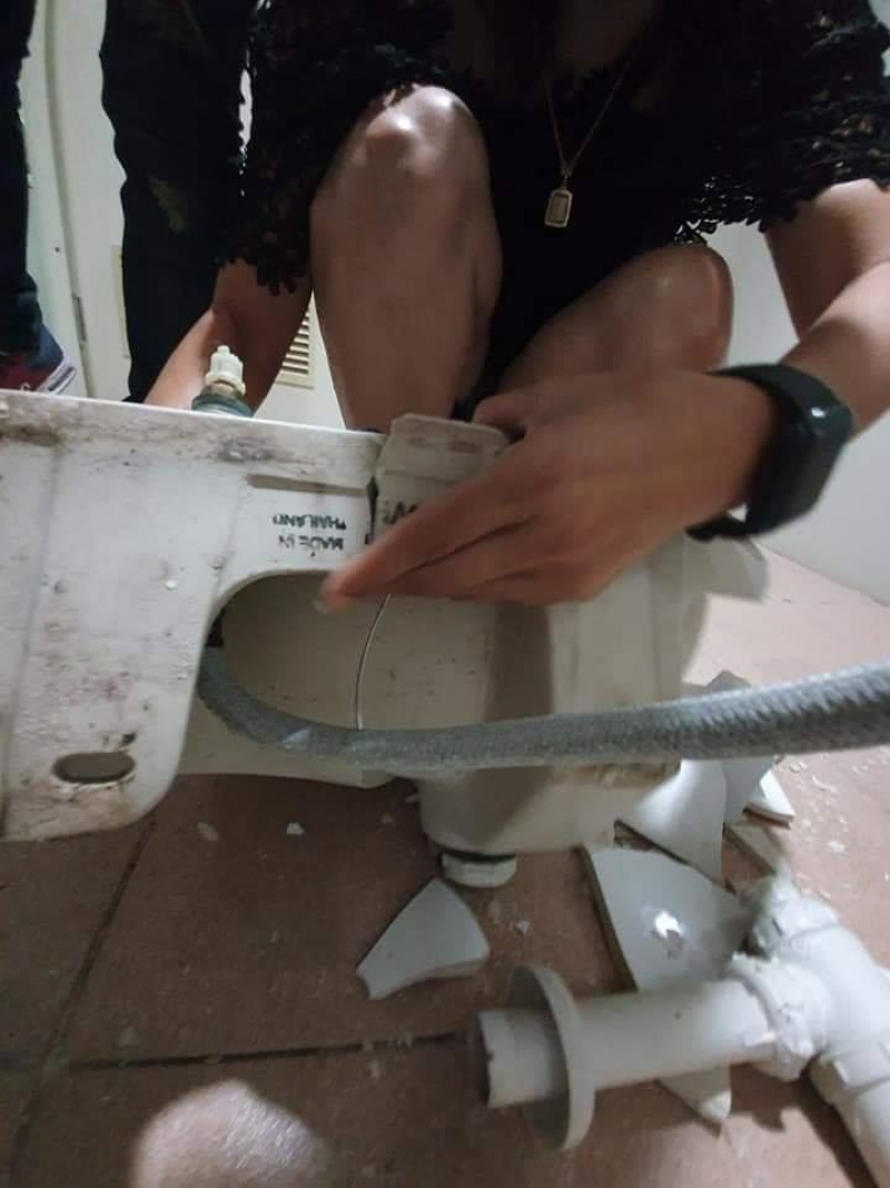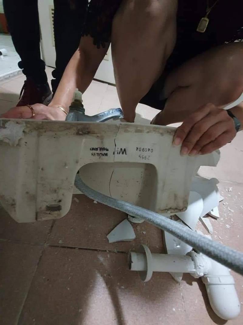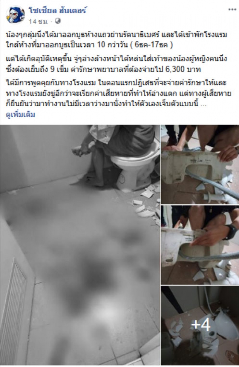 แต่ได้เกิดเรื่องขึ้น จู่ๆอ่างล้างหน้าได้หล่นใส่เท้าของน้องผู้หญิงคนนึง ค่ารักษาพยาบาลที่ต้องจ่ายไป 6300 บาท