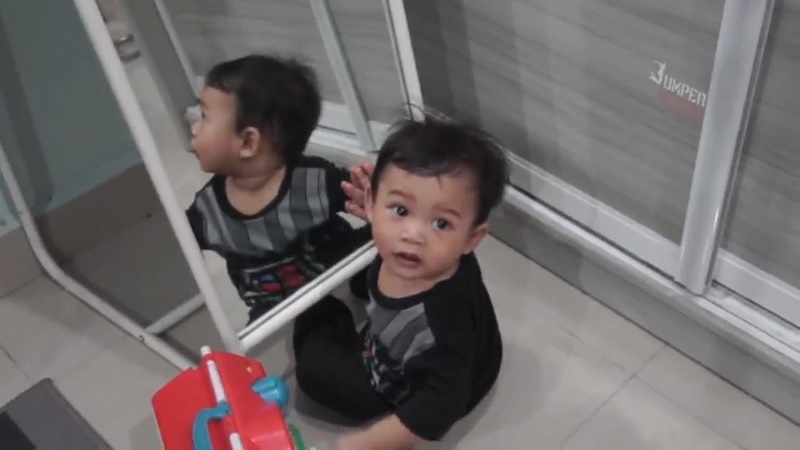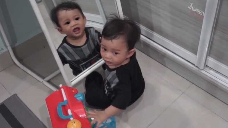 พ่อถ่ายคลิปหนูน้อยนั่งเล่นหน้ากระจก แต่เงาในกระจกกลับไม่หันตาม