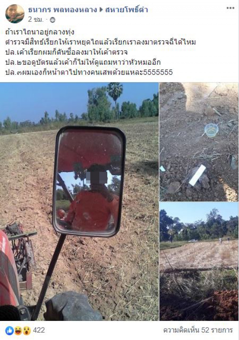 หนุ่มชาวไร่ร้องอิหยังวะ ไถนาอยู่กลางทุ่ง โดนตำรวจเรียก