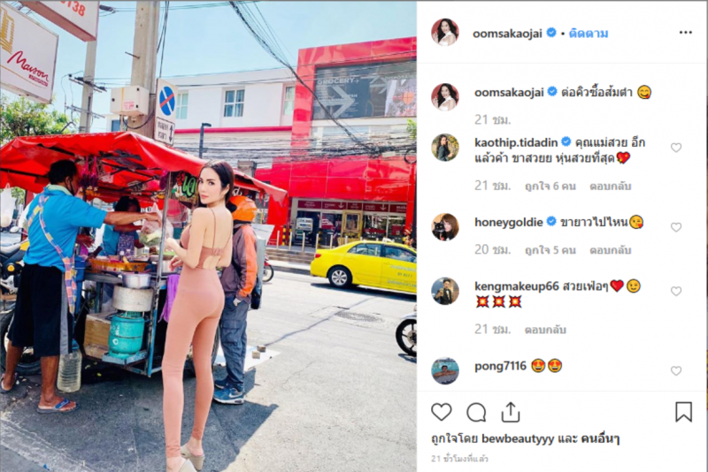 ล่าสุดทางด้าน อ๋อม สกาวใจ ได้ออกมาโพสต์รูปภาพและคลิปขณะที่ได้เดินไปซื้อส้มตำที่รถเข็นข้างทาง โดยได้มาในชุดสีชมพูชนิดที่ว่าแซ่บมากพร้อมกับเว้าหลัง ซึ่งทำเอาสามีถึงขั้นเอ่ยปากถามว่า แต่งตัวขนาดนี้จะไปไหน มาดูๆ ขำอ่ะ