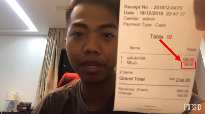 เป็นเรื่องราวที่โซเชียลเข้ามาแสดงความเห็นกันเป็นจำนวนมาก หลัง คลิปทดสอบสังคม โดยมีหนุ่มคนหนึ่งไปกินชาบูบุฟเฟ่ต์ชื่อดังแห่งหนึ่ง โดยป้ายบอกราคาระบุว่า เริ่มต้น 199 บาท แต่พอเขาไปกินกับโดนบวกเพิ่มค่าเครื่องดื่มอีก 39 บาท โดยได้โพสต์คลิปและข้อความผ่านทางช่อง DOMteamwork โดยระบุว่า