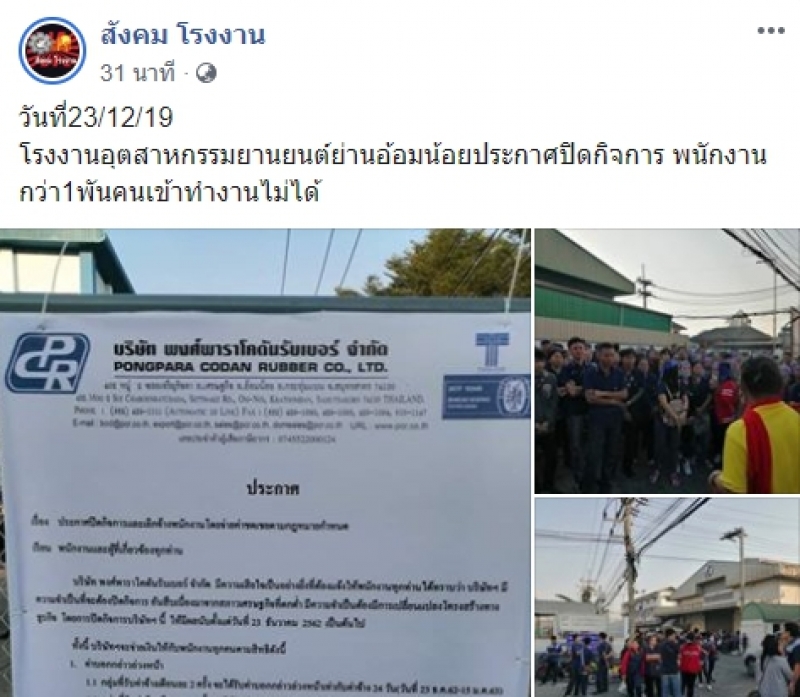 จากกรณี โรงงานอุตสาหกรรมยานยนต์ย่านอ้อมน้อยประกาศปิดกิจการ พนักงานกว่า1พันคนเข้าทำงานไม่ได้ เป็นอีกข่าวหนึ่งที่ไม่อยากให้เกิดขึ้นเลย แล้วเขาจะอยู่ยังไง ค่าใช้จ่ายก็ต้องมี เงินก็ต้องใช้ จากเพจ สังคม โรงงาน ได้แชร์เรื่องราวนี้ว่า