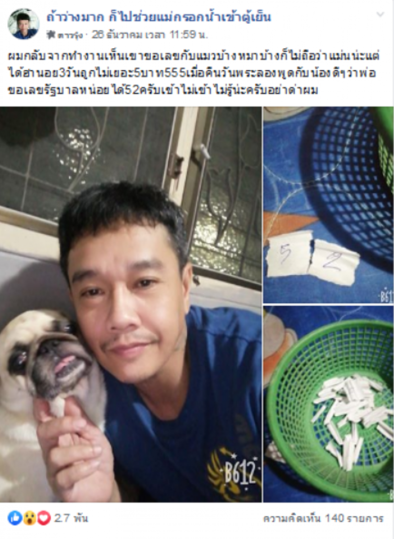 หนุ่มโพสต์ สุนัขคาบเลขให้ วันพระ