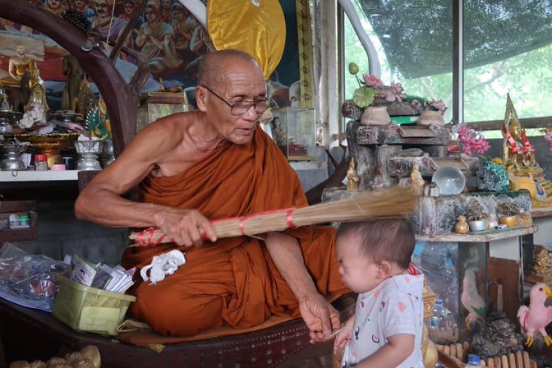 หลวงตา ประพรมน้ำมนต์ ให้หนูน้อย