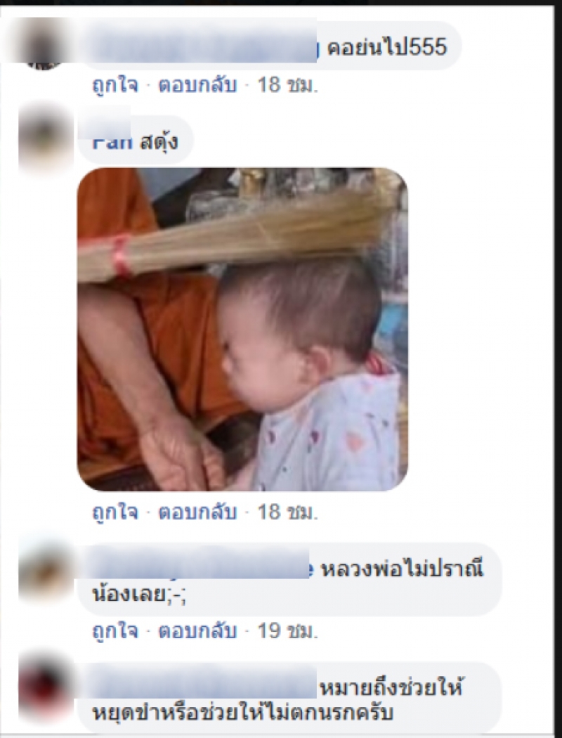 เป็นภาพที่สร้างเสียงหัวเราะและรอยยิ้มให้เป็นอย่างดี เมื่อหนูน้อยรายหนึ่ง ขณะที่หลวงตาปะพรมน้ำมนต์กลัวว่าที่พรมน้ำมนต์จะโดนหัว ถึงกับหลับตาปี๋ น่ารักมากๆ เมื่อวันที่ 30 ธันวาคม เพจ Like สาระ ได้โพสต์ข้อความระบุว่า ช่วยด้วย ขำรูปนี้มาสองนาทีแล้ว เรียกได้ว่าใครเห็นก็ต้องขำกันไม่หยุดอย่างแน่นอน เชื่อว่าไม่ใช่แค่หนูน้อยรายนี้ที่เป็นแบบนี้ เพื่อนๆก็ต้องเคยเป็น
