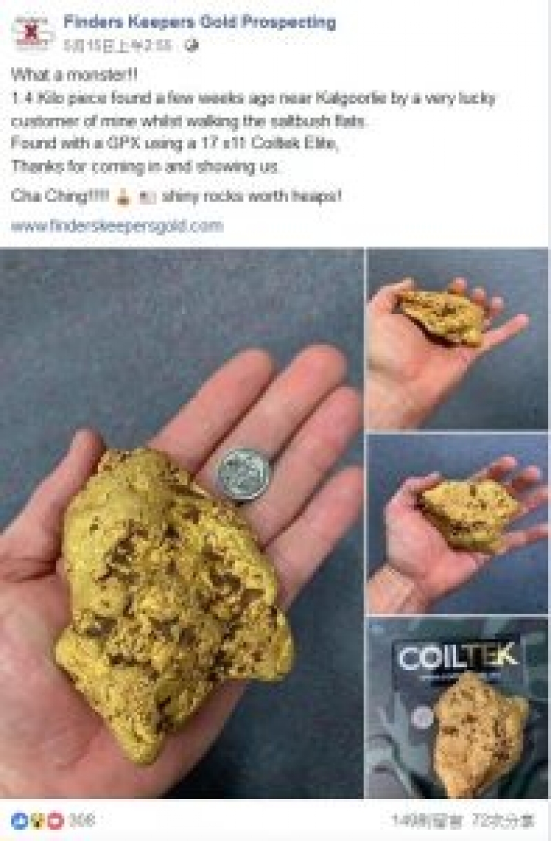สำนักข่าวต่างประเทศรายงานว่า ชายชาวออสเตรเลียรายหนึ่งพบแร่ทองคำน้ำหนัก 1จุด4 กิโลกรัม โดยบังเอิญด้วยการใช้เครื่องตรวจจับโลหะขณะเดินสำรวจในแหล่งสายแร่ทองคำของรัฐเวสต์เทิร์นออสเตรเลีย โดยรายงานไม่ปรากฎชื่อของชายคนดังกล่าว