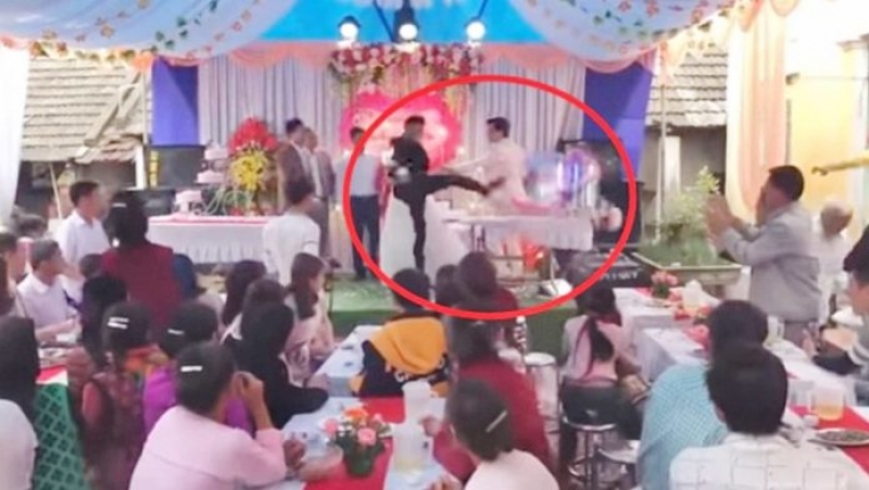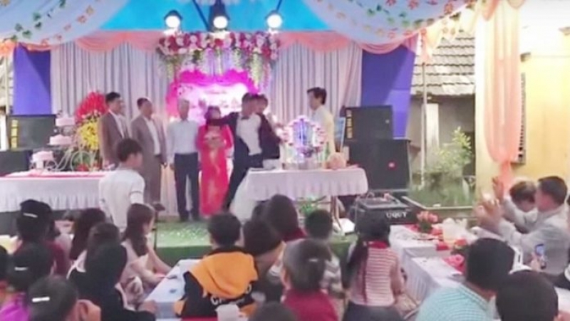 จากคลิปที่โพสต์ผ่านเว็บไซต์ยูทูบ ระบุว่าเป็นงานแต่งงานเมื่อวันที่ 31 ธ.ค.ที่ผ่านมา ในเขตมินกวง อำเภอตัมด๋าว จังหวัดหวิญฟุก ทางตอนเหนือของเวียดนาม เผยให้เห็นเจ้าบ่าว เจ้าสาว พร้อมด้วยครอบครัวยืนอยู่บนเวที และกำลังกล่าวกับผู้ร่วมงาน แต่จู่ๆ หนึ่งในสมาชิกครอบครัวพูดบางอย่างกับเจ้าบ่าว และแทบจะทันทีที่เจ้าบ่าวแสดงอาการไม่พอใจ จากนั้นเขวี้ยงแก้วแชมเปญของตัวเอง ก่อนหันไปเถียงกับผู้เป็นพ่อ จนเกิดเรื่อง