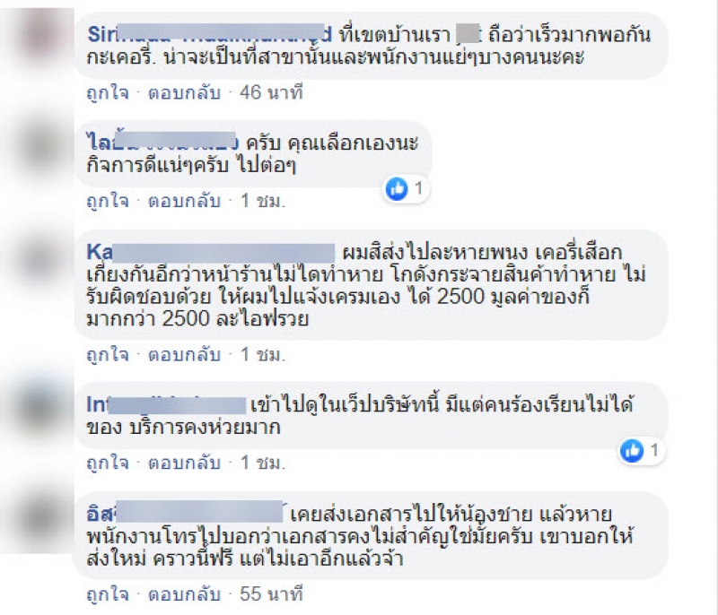 เจ้าของเรื่องตามให้บริษัทชดใช้เป็นเวลากว่า 2 เดือน สุดท้ายได้เงินชดเชยมาจำนวน 380 บาท ที่เป็นค่าส่ง 38 บาท 10 กล่อง ได้รับชดเชยเฉพาะค่าส่งเท่านั้น สินค้าในกล่อง ไม่มีความหมายใดๆ พนักงานอ้างแต่ว่าเป็นกฎของบริษัท อันนี้ทาง Express Thailand จะยังไงดี ถ้ากฎเป็นแบบนี้ ก็ตามนั้น ไม่ต้องทำไรเพราะเป็นกฎบริษัท คนใช้บริการจะได้ระวังตัวเอาเอง