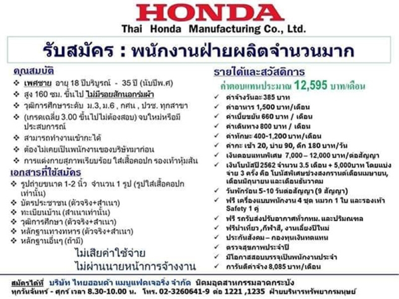บริษัท ฮอนด้า เปิดรับสมัคร ตำแหน่งเพียบ สวัสดิการจัดเต็ม