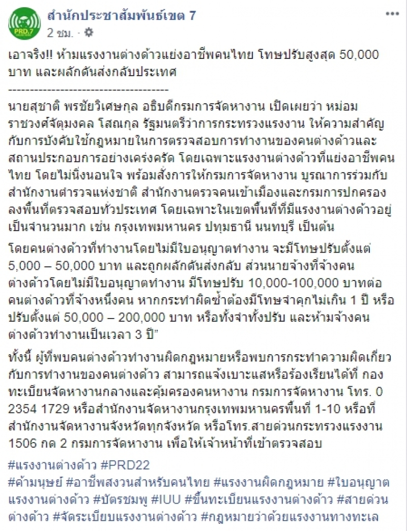 เอาจริง ห้ามแรงงานต่างด้าวแย่งอาชีพคนไทย โทษปรับสูงสุด 50000 แถมส่งกลับประเทศ