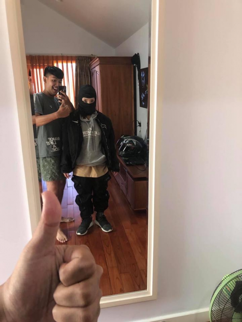 งานนี้เอาทั้งเสื้อคลุม กางเกง หมวกกันน็อคมาใส่ให้ซะเลย ออกไปแบบนี้แหละสบายใจสุด ก็คนมันหวงต้องเข้าใจหน่อยนะคุณผู้หญิง