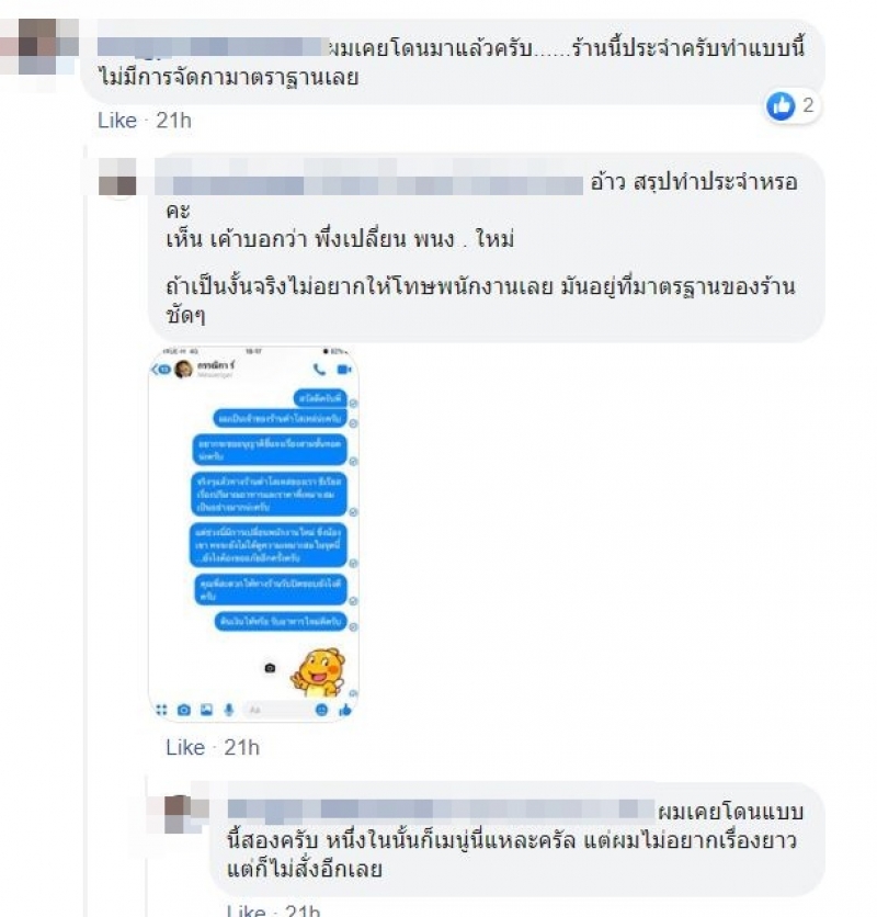 านนี้ประจำครับทำแบบนี้ ไม่มีการจัดการมาตรฐานเลย ผมเคยโดนแบบนี้สองครับ หนึ่งในนั้นก็เมนู่นี่แหละครับ แต่ผมไม่อยากเรื่องยาวแต่ก็ไม่สั่งอีกเลย อีกรายก็บอกว่า เคยสั่งเมื่อเดือนตุลา ปริมาณน้อยมากนะคะ จนคนมาส่งงง พากันนับชิ้นดู ได้แค่ 10 ชิ้น บางๆ เอง แนะนำให้ปรับปรุงนะคะ