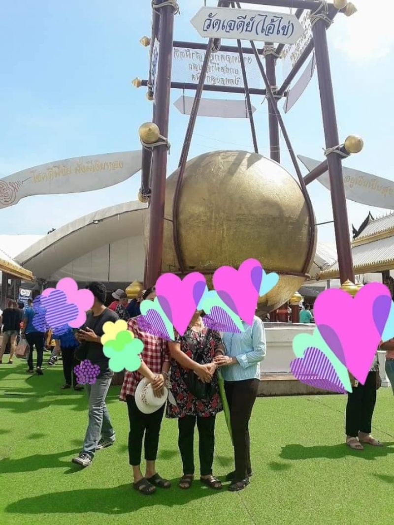 สาวสวยไปทำบุญ วัดเจดีย์ไอ้ไข่ ถ่ายรูปให้น้าๆ เห็นเลขบนลูกนิมิต