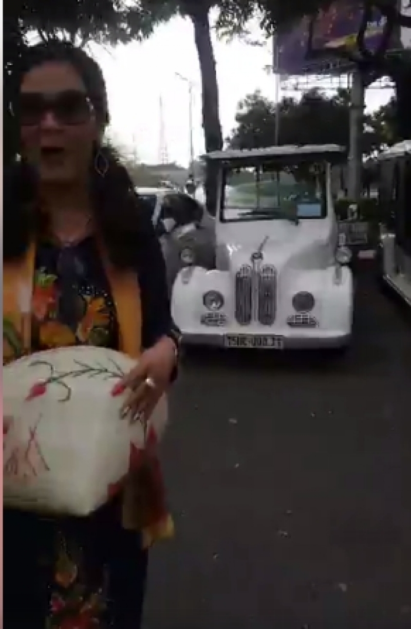 โดยที่พี่นางแต่งกายคล้ายสาวชาวเวียดนาม สีน้ำเงิน พร้อมทั้งแนะนำลูกทัวร์ในครั้งนี้ ที่นั่งรออยู่บนรถ งานนี้ไม่พลาดที่เหล่าบรรดาแฟนคลับ ส่องตัวเลขรถคันดังกล่าว