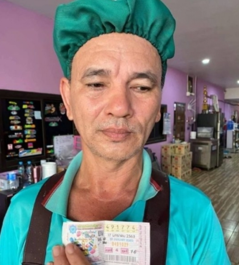 ฝันเป็นจริง คนงานร้านลูกชิ้น ถูกรางวัลที่ 1 แผง เจ๊เกียว