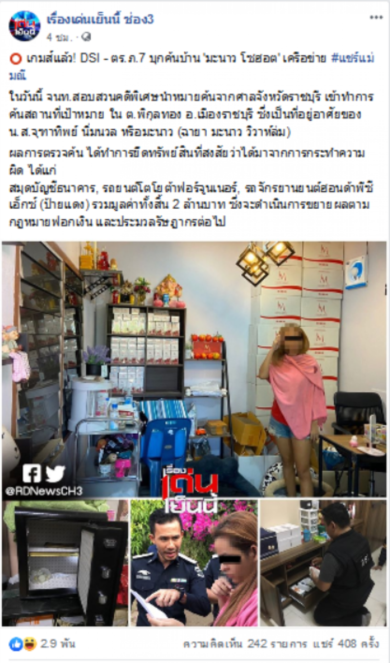 เกมส์แล้ว DSI ตร ภ 7 บุกค้นบ้าน มะนาว โซฮอต เครือข่ายแม่มณี