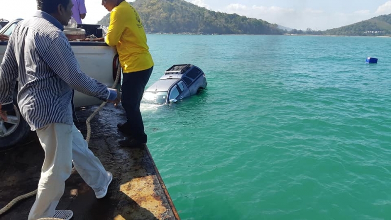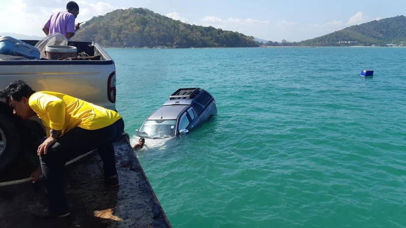 ส่วนสาเหตุคาดว่าหลังจอดบนเรือแล้วเจ้าของรถไม่ได้ดึงเบรคมือไว้รถจึงไหลลงน้ำไป