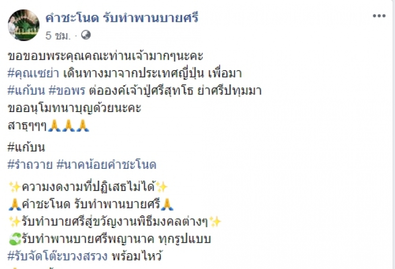 อ้อมเอาขันน้ำมนต์มาฝากค่ะ เจ้าภาพ คุณอิ๊ง จากชลบุรี พร้อมครอบครัว สาธุๆๆ ค่ะ ขอให้สมปราถนาทุกประการ และยังได้โพสต์ภาพและคลิปขณะที่ นาคน้อยรำถายแก้บน ปู่ศรีสุทโธ ย่าศรีปทุมมา