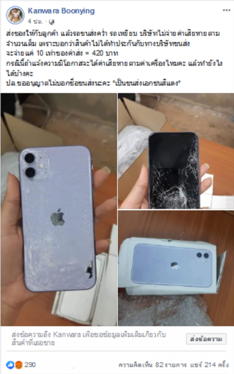 สาวส่งไอโฟน 11ให้ลูกค้า กับขนส่งชื่อดัง