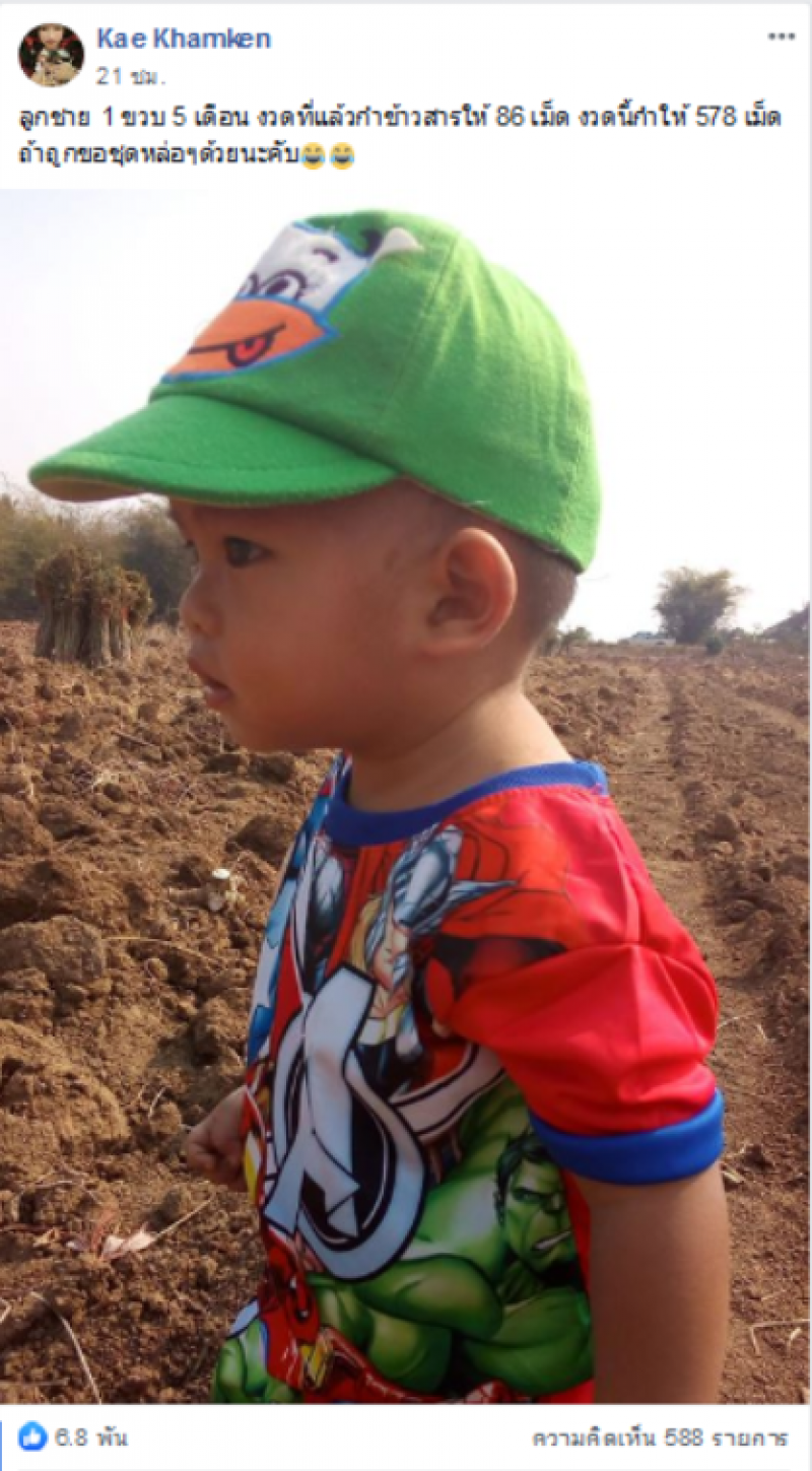 บุตรชาย 1 ขวบ 5 เดือน รอบที่แล้วกำข้าวสารให้ 86 เม็ด รอบนี้กำให้ 578 เม็ด ถ้าถูกขอชุดหล่อๆด้วยนะคับ