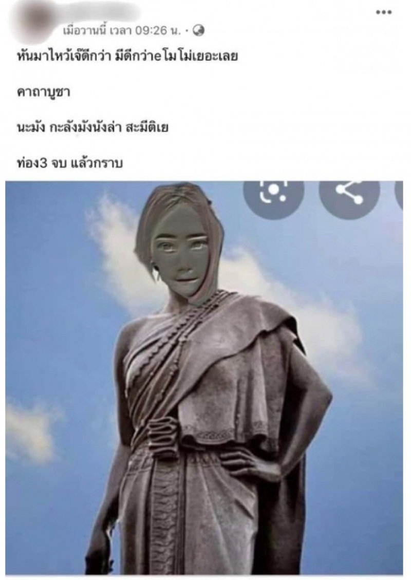 สาวตัดต่อหน้าใส่รูปปั้นย่าโม ล่าสุดโพสต์แรงเหน็บชาวอีสาน