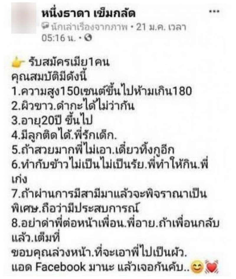 รับสมัครเมีย 1 คน มีคุณสมบัติดังนี้