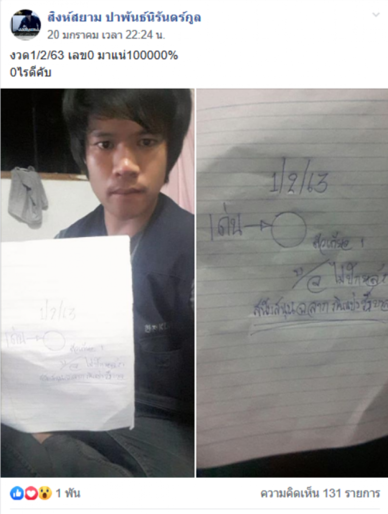 ล่าสุดเข้าเต็มๆจ้า สำหรับเลข คุณสิงห์siam ปาพันธ์นิรันดร์กูล ได้โพสต์ข้อความระบุว่า 1 2 63 เลข 0 มา 100000 เปอร์เซ็น 0 ไรดีคับ