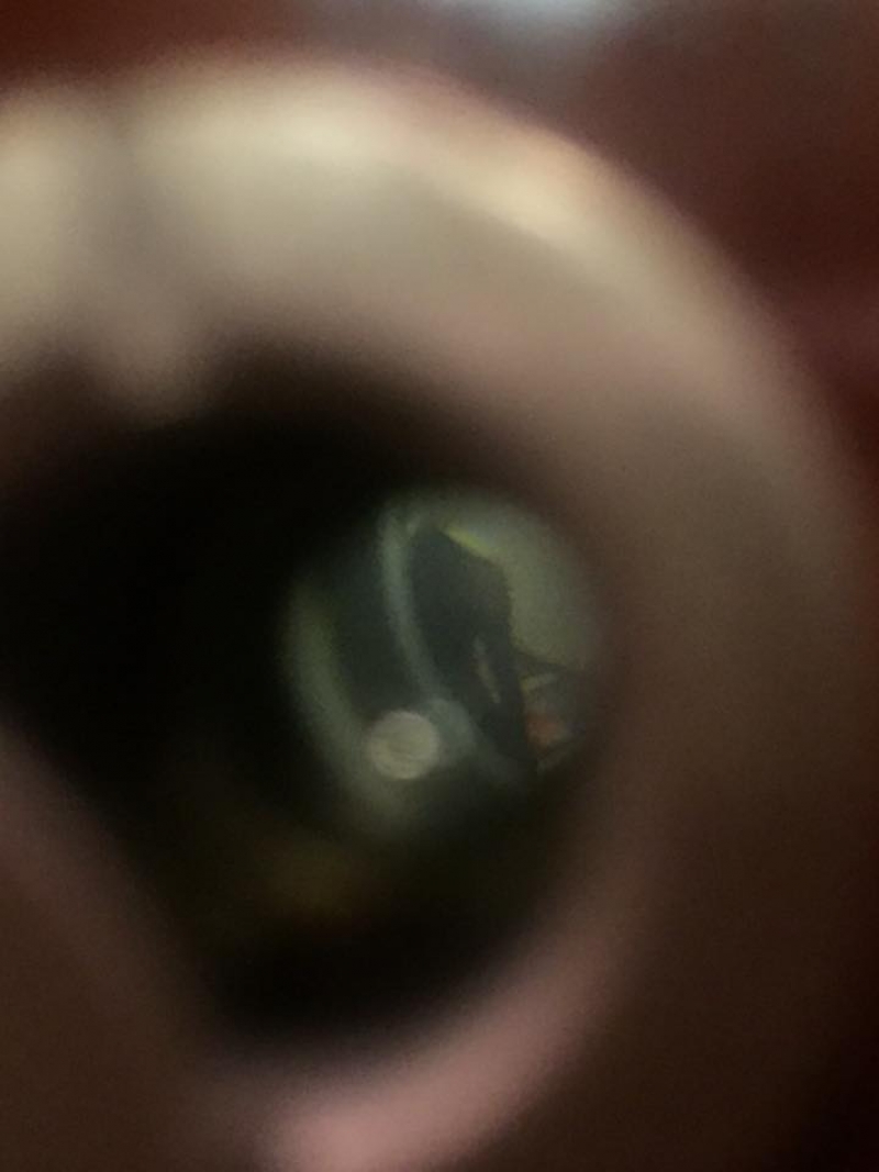 พอเที่ยงคืนจะนอน เสียงกดกริ่งมาอีก พร้อมเสียงกระชากประตู เราเริ่มร้องไห้ ส่องตาแมวไป เค้ายังอยู่ท่าเดิม ตามรูปเลย อัดคลิป ถ่ายวีดีโอเผื่อต้องแจ้งความ ขณะถ่ายวีดีโอได้ยินเสียงนํ้าเทลงพรม